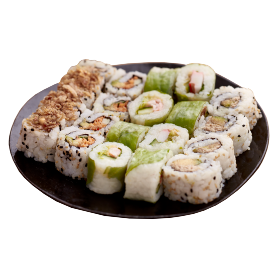 4 roll saumon, 4 maki saumon, 6 sushi saumon, 4 california saumon oignon frit, 4 maki avocat, 2 california saumon